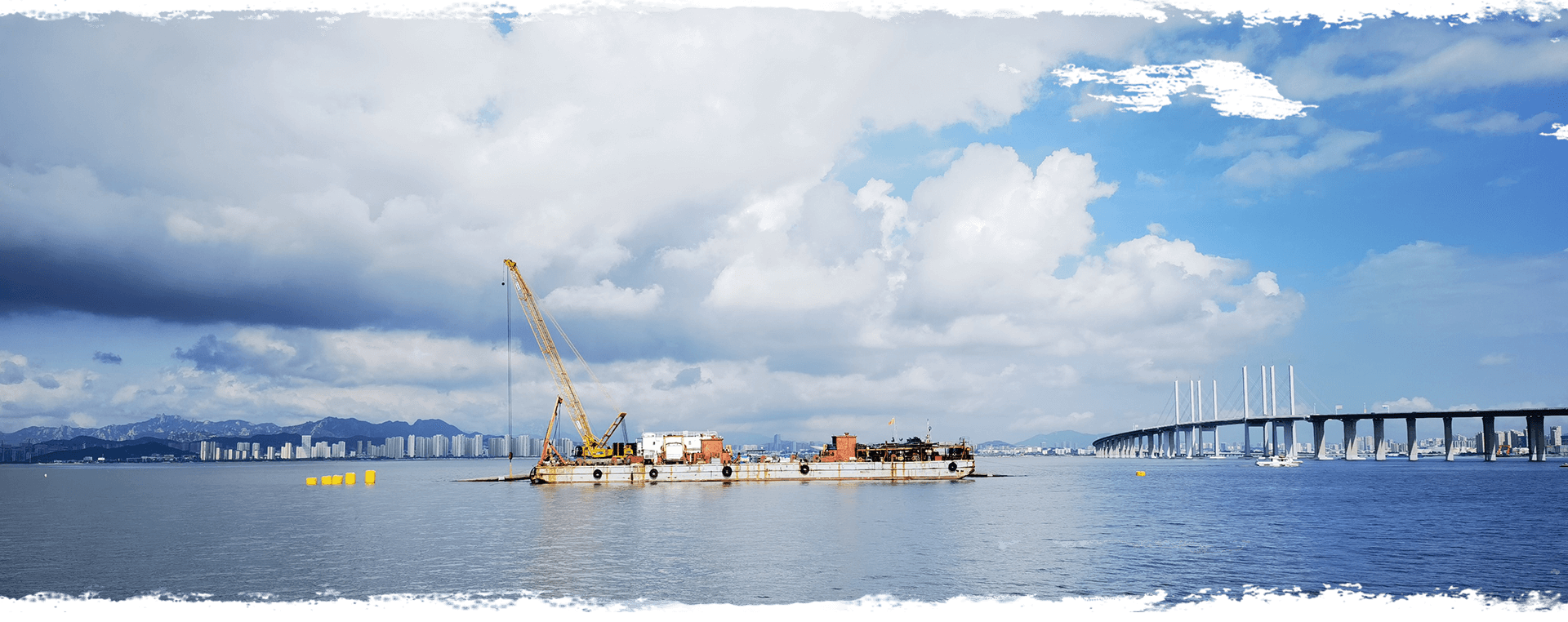 公司自成立以来一直致力于发展海洋工程业务,历经多年努力,公司足迹已遍布国内所有海域。在印度尼西亚、马来西亚、菲律宾、孟加拉、坦桑尼亚以及贝宁等亚洲、非洲海域实施过多个项目,并参与越南、日本、中东、委内瑞拉、尼日利亚、肯尼亚等过多个项目的投标及实地考察工作。